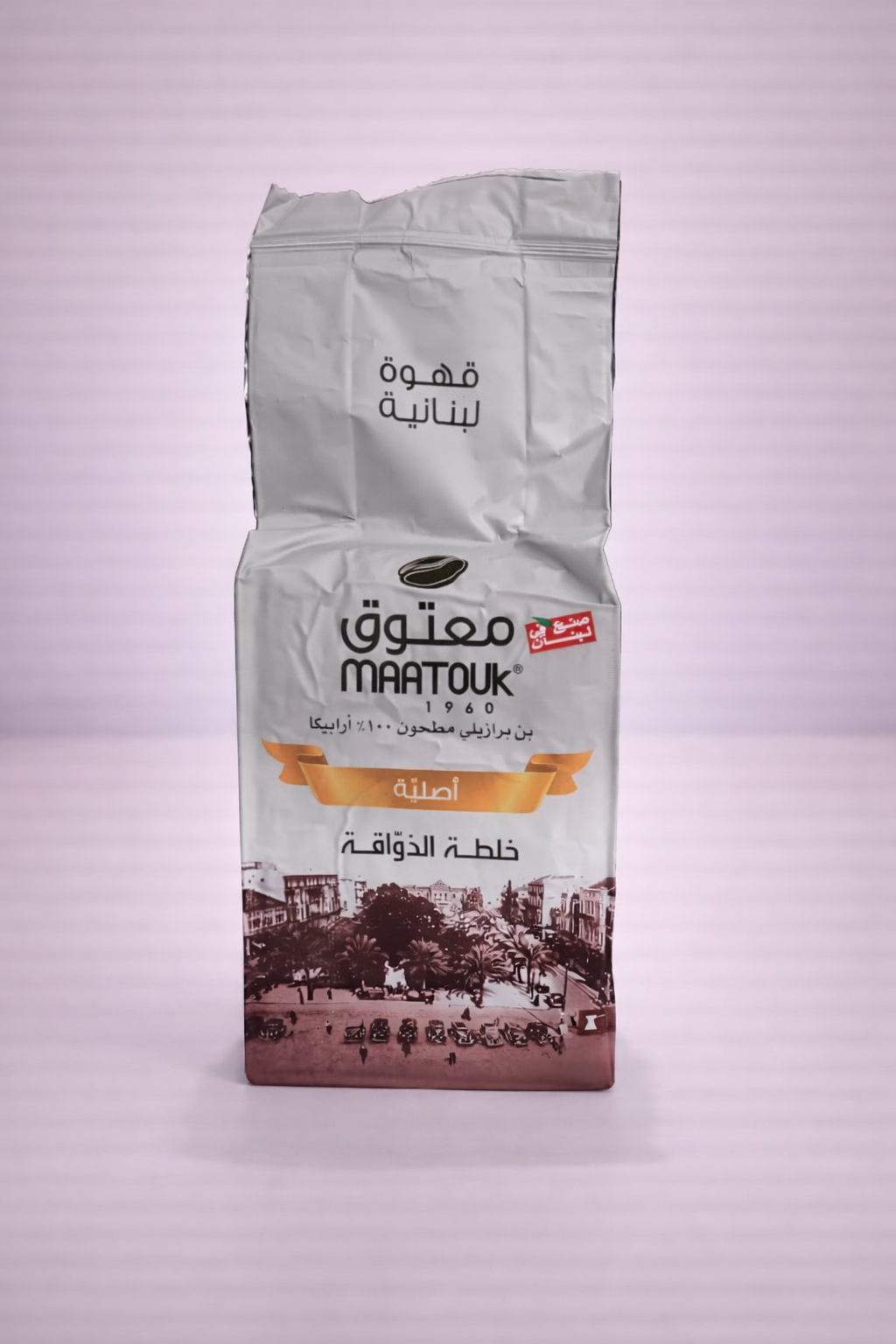 Café Maatouk tradicional, 100% café árabe moído fino, sem adição de especiarias. Perfeito para quem prefere o sabor puro do café libanês.